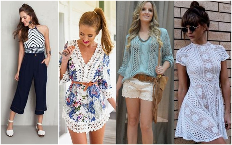 diversas opções e estilos para usar tricô, renda e crochê, sempre com a sua